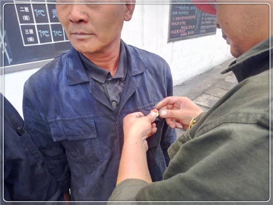 黨支部書記親自為優(yōu)秀黨員佩戴黨徽